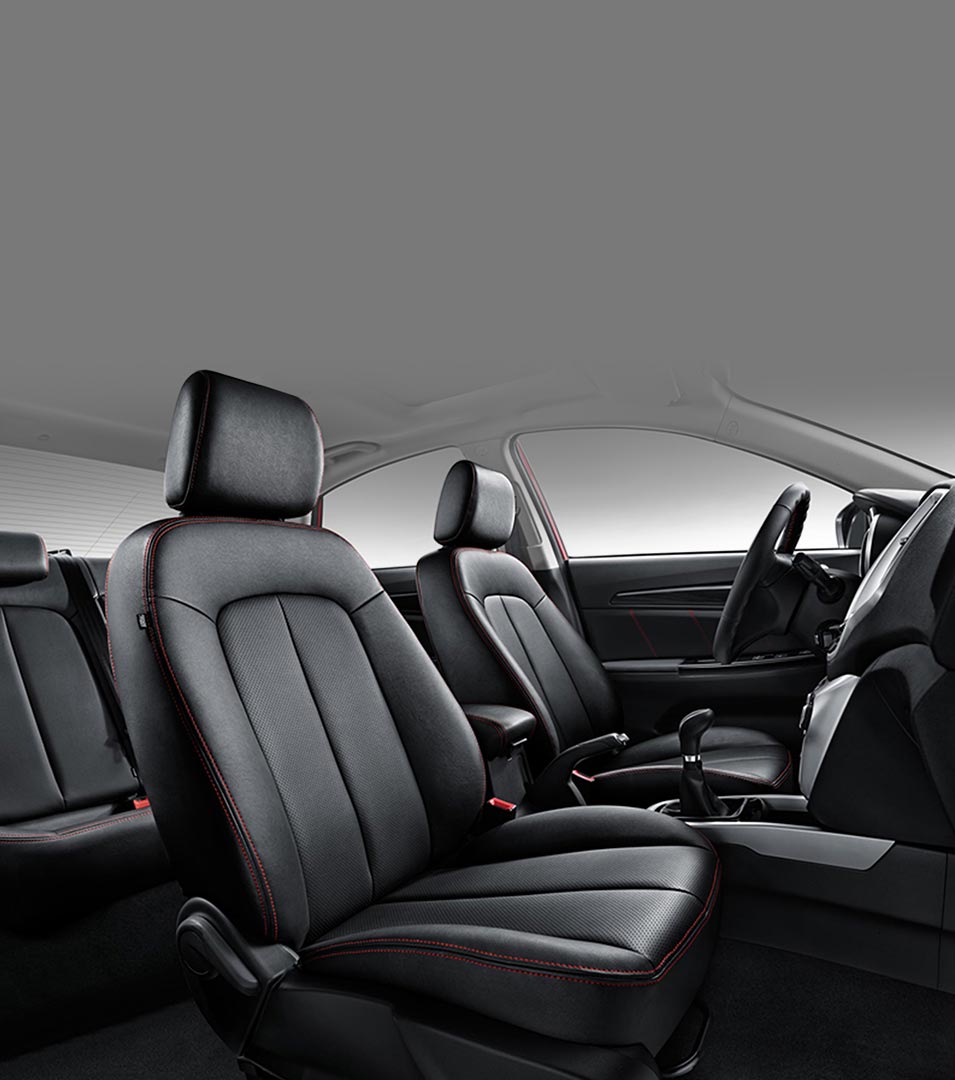 Sporty leather seats, comfortable on both long and short journeys