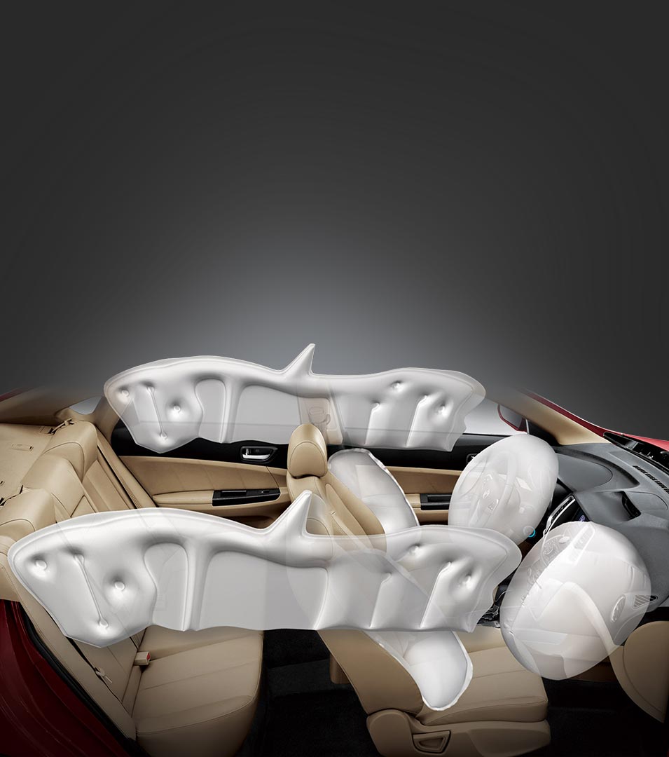 Comprehensive six airbag interior safety system
